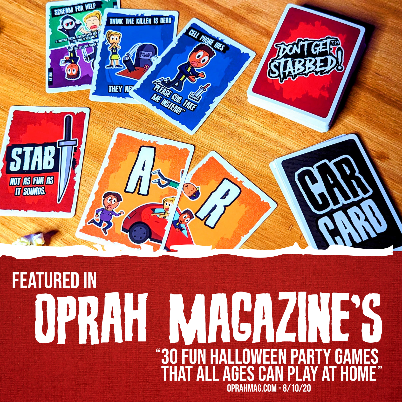 Don’t Get Stabbed! is a party game where you get to kill your family and friends! ... for pretend of course. It’s inspired by horror movies like Friday the 13th, Halloween, and Scream, but is light-hearted enough for everyone to enjoy. The perfect Christmas gift for a horror fan.